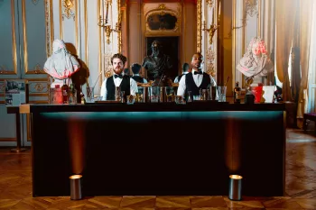 The service includes the hire of the room(s) from 7pm. The caterer, lighting, and sound systems are optional and must be chosen from a list of approved service providers.